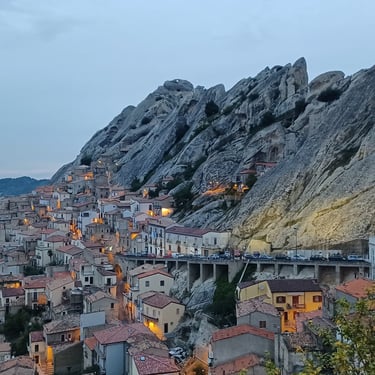 Today we head toward the spectacular Lucanian Dolomites, a mountain landscape of striking rock formations and two picturesque villages—Castelmezzano and Pietrapertosa—that seem to cling to the cliffs.