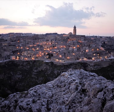 Guided tours of the Sassi, the Murgia Park, the Murgecchia site, the villages of La Martella and Timmari, Craco, Aliano, the Lucanian Dolomites and Castel del Monte with minivan transfers.