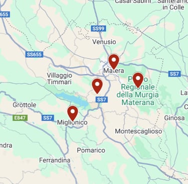 This itinerary combines history, culture, nature and gastronomy, enriching each stop with authentic atmospheres and moments of taste, always starting from Matera, for an unforgettable experience between Basilicata and Puglia.